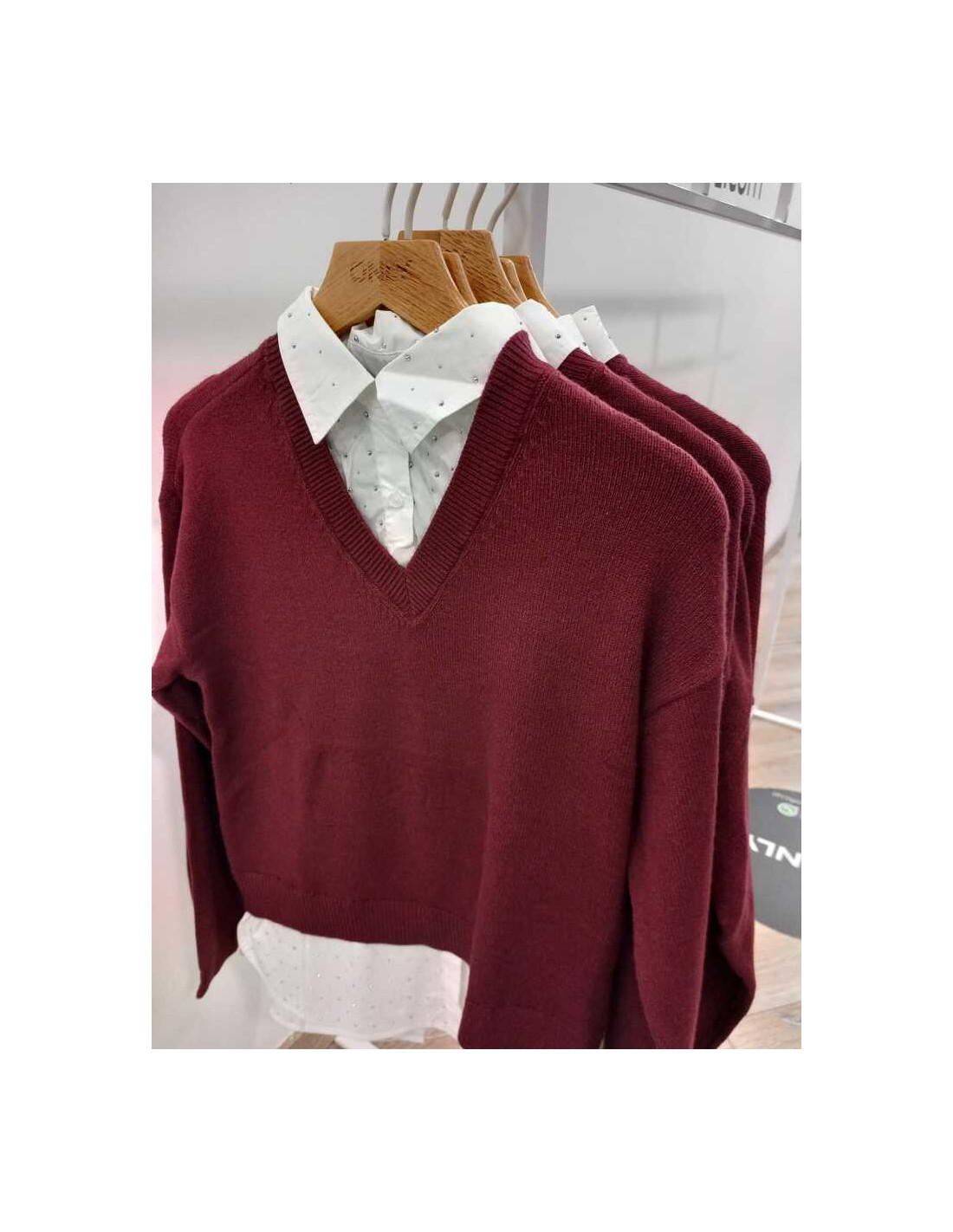Jersey brillos sobre camisa . ONLDAGMAR LS COLLAR MIX KNT